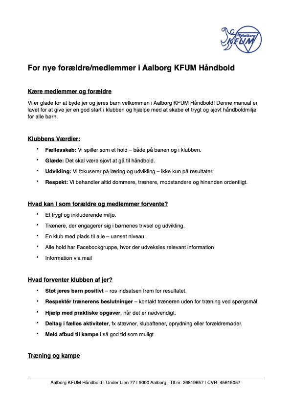 Her finder du samlingen af manualer for spillere, forældre, trænere, koordinatorer og dommere. Manualerne er skabt for at give alle en god start i klubben og sikre et trygt, sjovt og velfungerende håndboldmiljø.